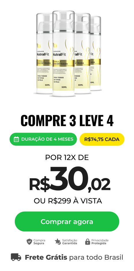 Além de clarear manchas, o clareador NutralFit também melhora a textura da sua pele levando uma aparência mais suave para a pele.